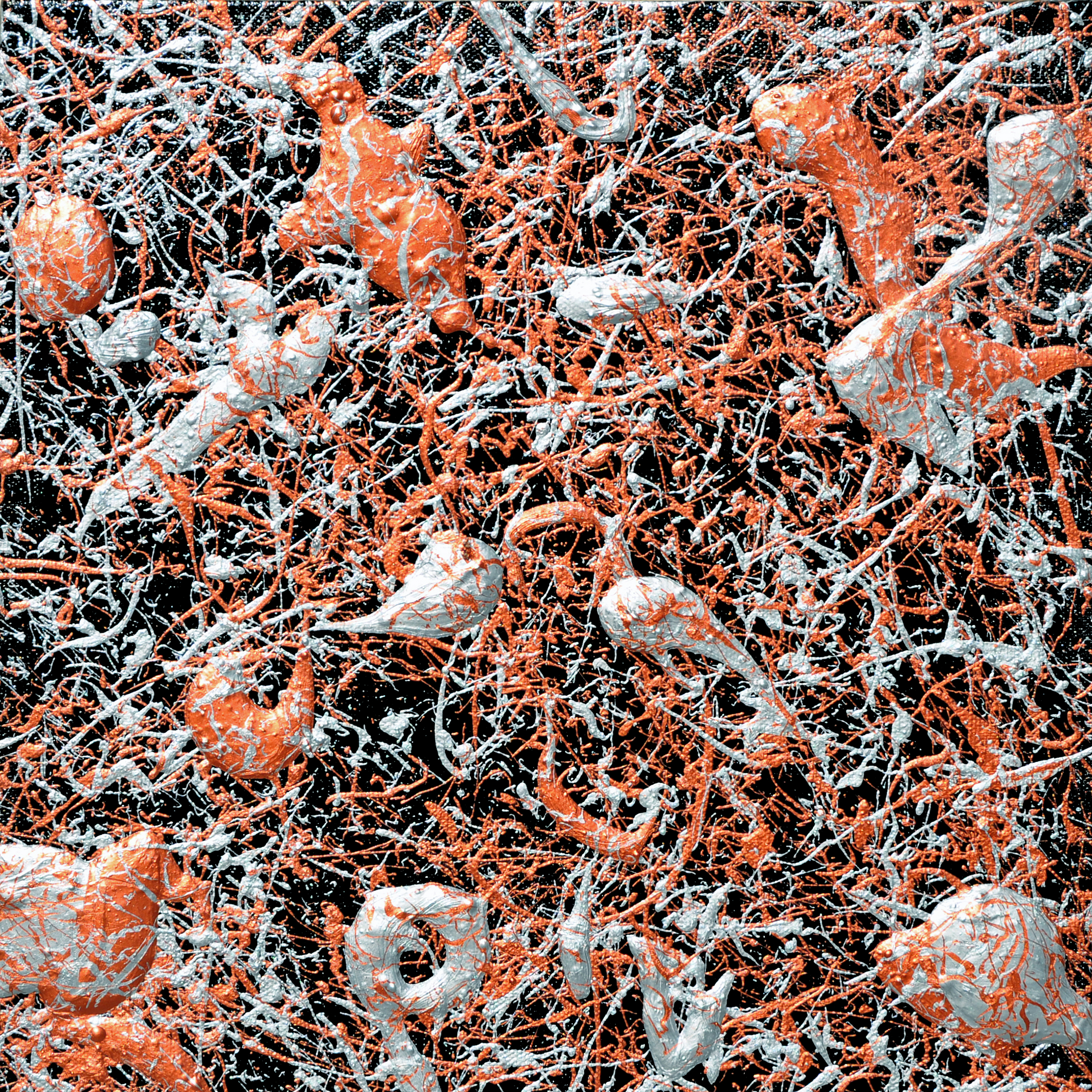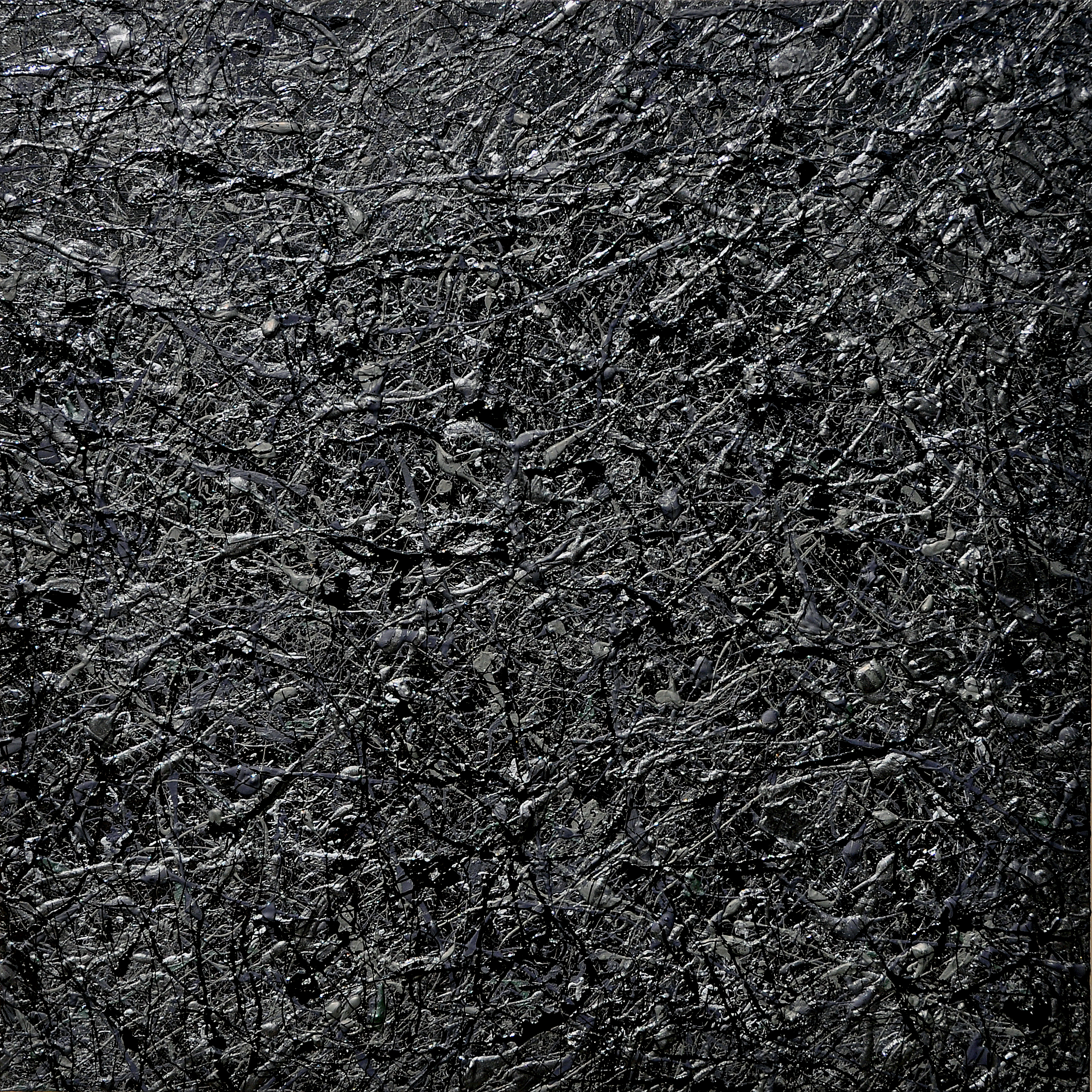 Dripping e Sketching con acrilico e smalto su tela cm 80 x 80 x 3,8– 2010