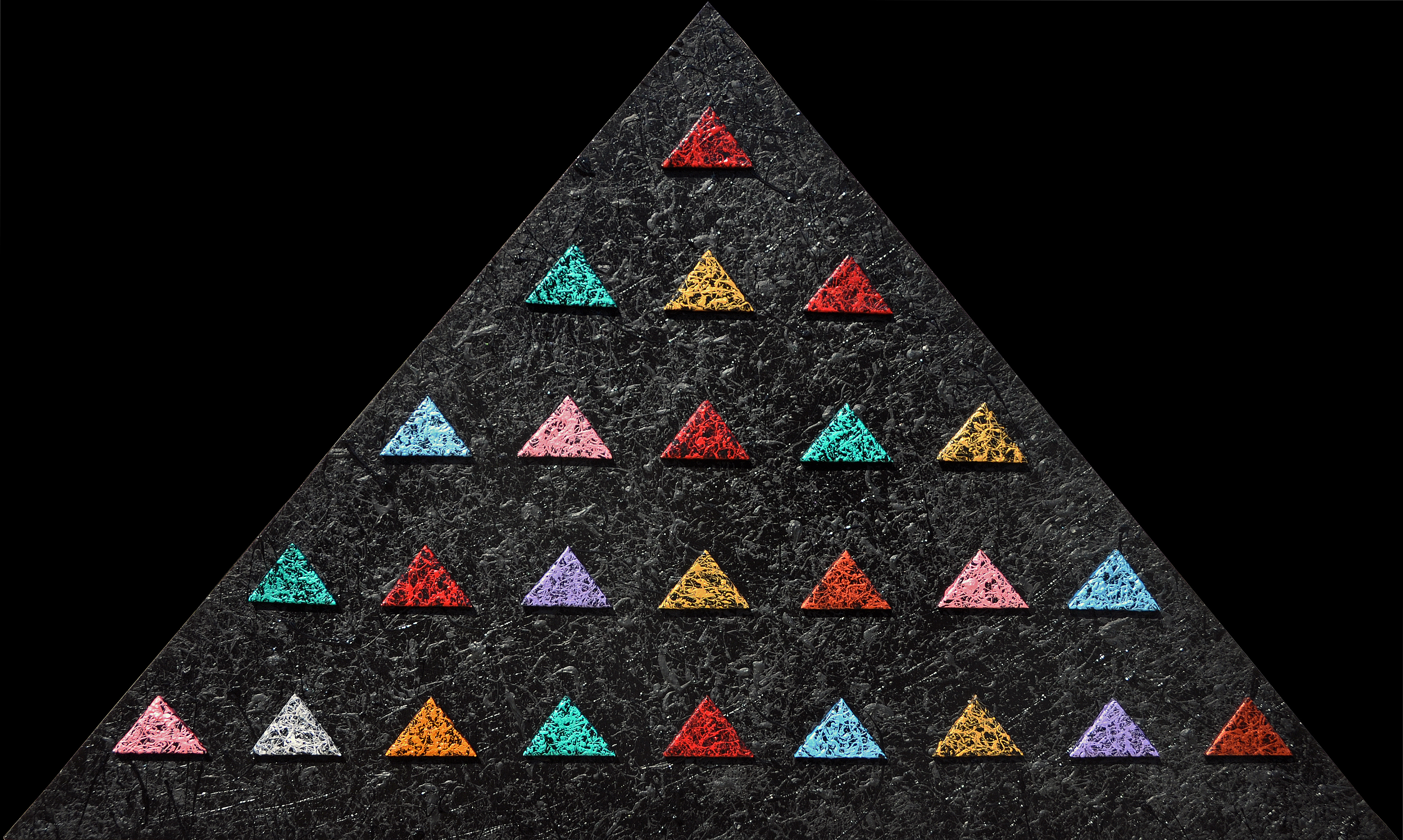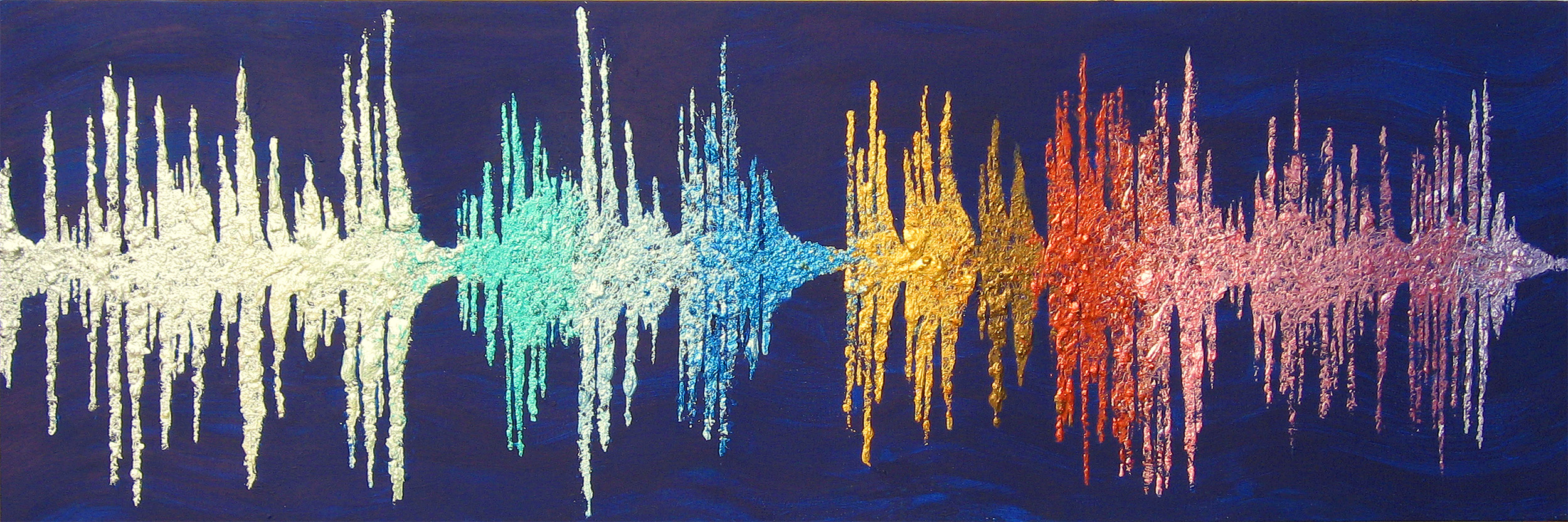 Dripping e Sketching con acrilico e smalto su tela cm 50 x 150 x 3,5 – 2013